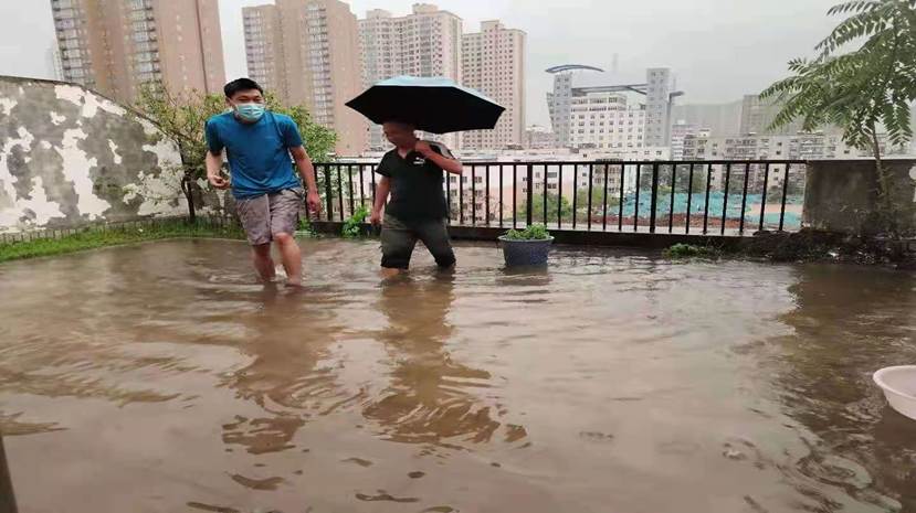 正在危难之际,住在二楼的太阳集团tyc151cc王毅老师获悉情况后,不顾年幼孩子一人在家的危险,急忙来到范老师家帮忙。看到当时屋内漏水的严重情况,王毅一方面帮助处理房内漏水,一方面想办法打开六楼家的房门,排除六楼阳台积水。王毅联系住在四楼的图书馆冀枫老师和理学院的王庭太老师上来帮忙。