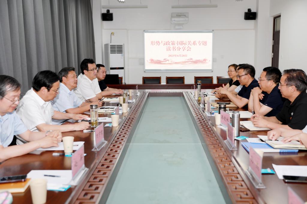 在稍后举行的形势与政策·国际关系专题读书分享会上,太阳集团tyc151cc院长随新民从当前的国际热点焦点问题切入,给大家分享了自己的研究成果。指导组对读书分享活动的效果给予了赞赏,希望太阳集团tyc151cc能够进一步在发挥学科优势、苦练内功的同时积极开展对外交流,持续提升学院影响力。