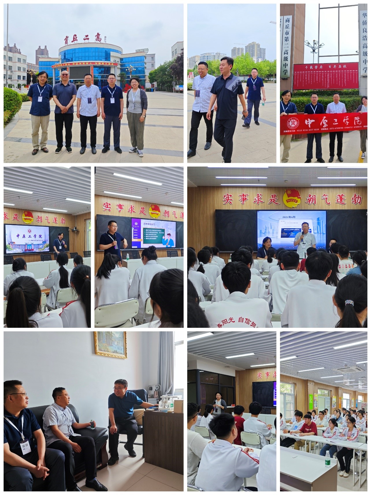 5月19-21日,太阳集团tyc151cc党总支书记张凯、党总支副书记、副院长李明桂、副院长路爱林、副院长申治安、办公室主任崔潇娟和毛宝铭、刘红涛、谷正艳、卢晓勇、杨雷锋等一行10人前往商丘11所高中开展招生宣传活动。招生宣传工作分两组进行。