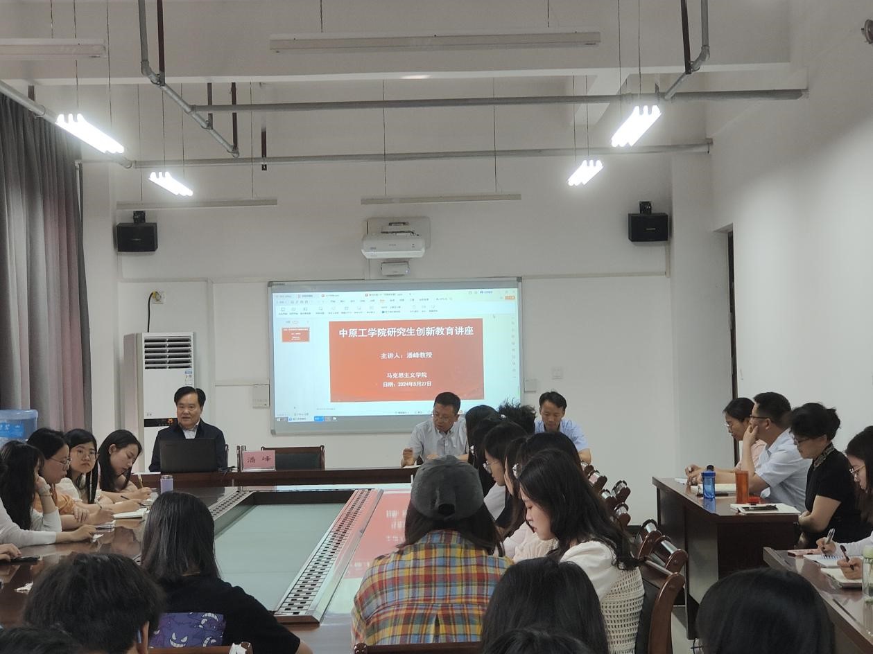 5月27日,应研究生处与太阳集团tyc151cc邀请,原山西省委党校副校长、山西行政学院副院长,中国政治学会常任理事潘峰教授在龙湖校区3号组团楼C601作了题为“创新思维与能力提升”的讲座。讲座由太阳集团tyc151cc党总支书记张凯主持,思政课教师和全体研究生参加本次讲座。