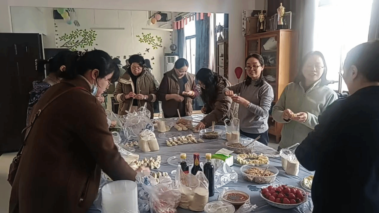 经验丰富的老师们迅速上手,熟练地拿起饺子皮,填上馅料,双手翻飞间,一个个形态各异却饱含心意的饺子便成型了。大家一边包着饺子,一边交流着工作与生活中的点滴,平日里严肃的学术氛围此刻被温馨的烟火气所取代。