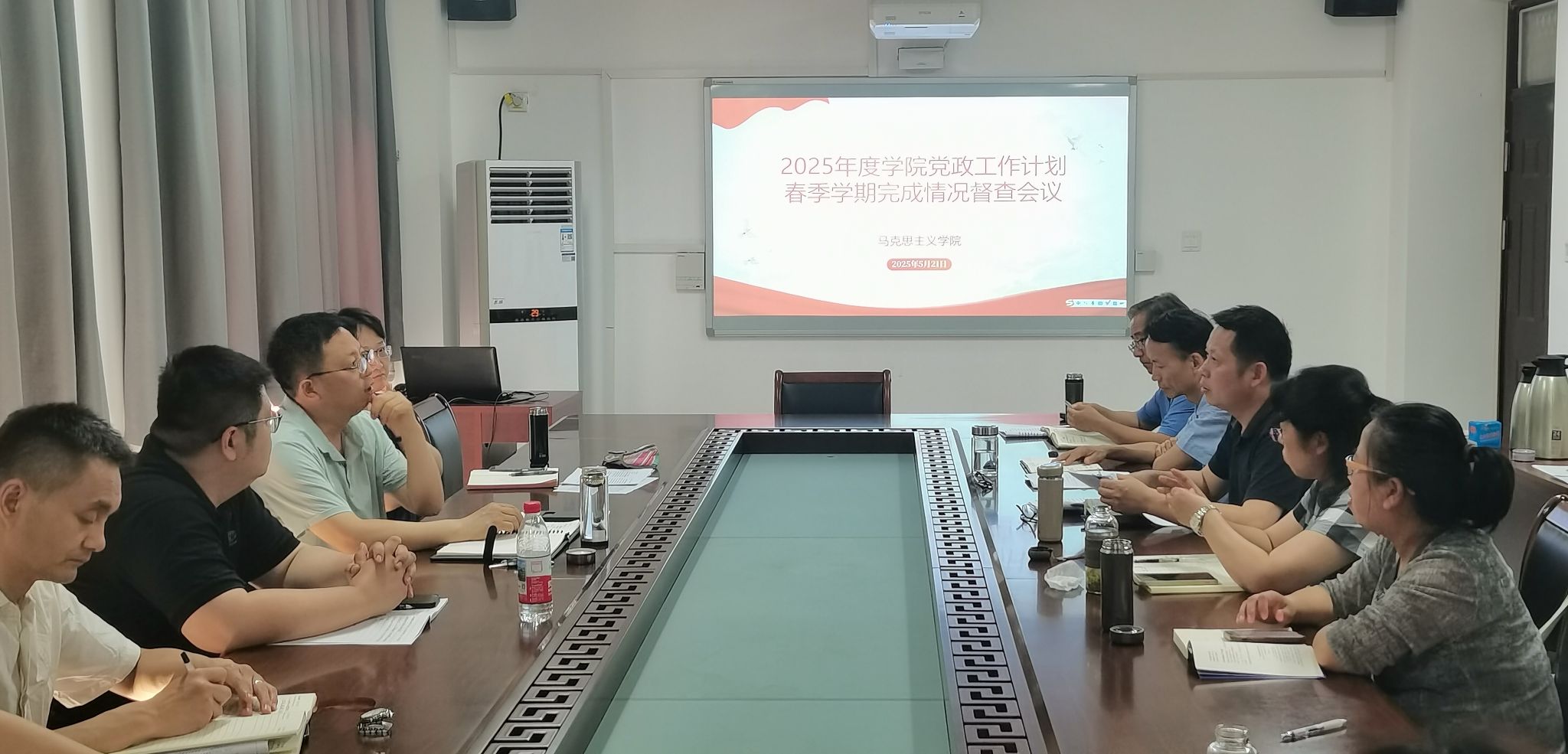 为确保2025年学院党政工作计划的贯彻执行,进一步提升学院管理水平和服务质量,5月21日上午,我院在3号组团楼C601会议室召开2025年度学院党政工作计划春季学期完成情况督查会议,学院全体班子成员、各教研室主任、各支部书记参会。本次会议由院长张凯主持。