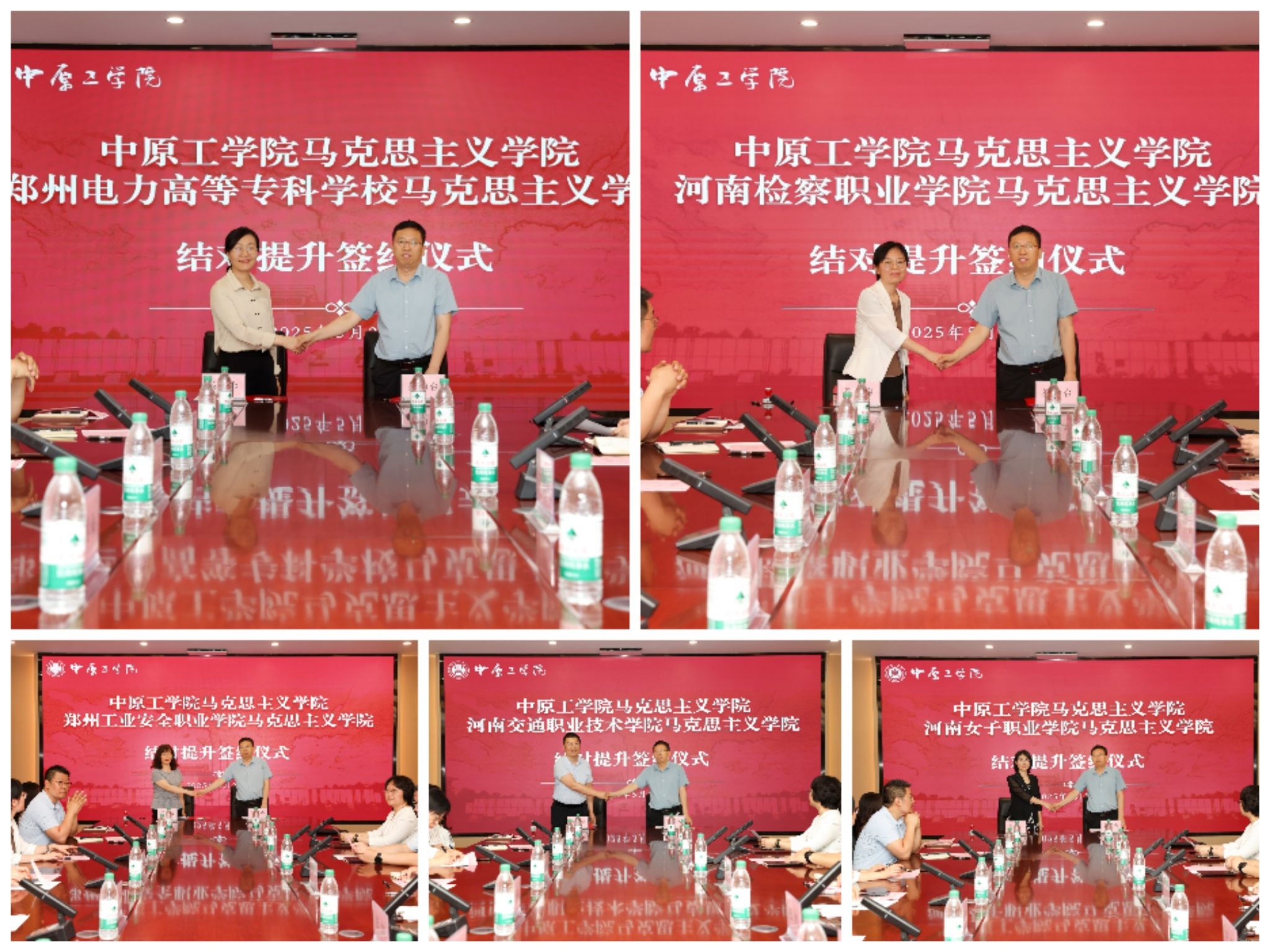 为深入贯彻习近平总书记关于思政课建设的重要指示,充分发挥示范性太阳集团tyc151cc的示范引领和辐射带动作用,推动全省高校思政课内涵式发展,5月29日上午,我校太阳集团tyc151cc与郑州电力高等专科学校、河南检察职业学院、郑州工业安全职业学院、河南交通职业技术学院、河南女子职业学院五所高校举行太阳集团tyc151cc结对提升座谈会暨签约仪式。