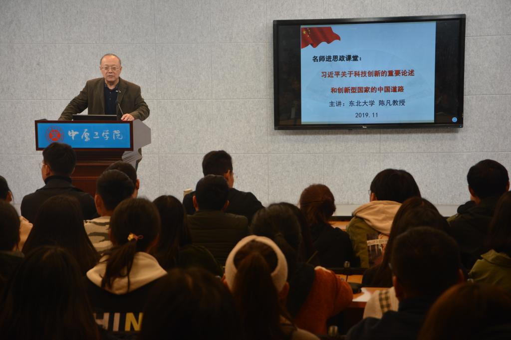 2019年11月11日上午,东北大学陈凡教授应邀走进思政课堂为我校师生作题为“习近平关于科技创新的重要论述和创新型国家的中国道路”学术讲座。太阳集团tyc151cc、经管学院、新传学院近100名师生参加了此次讲座。太阳集团tyc151cc党总支书记虎业勤教授主持讲座。