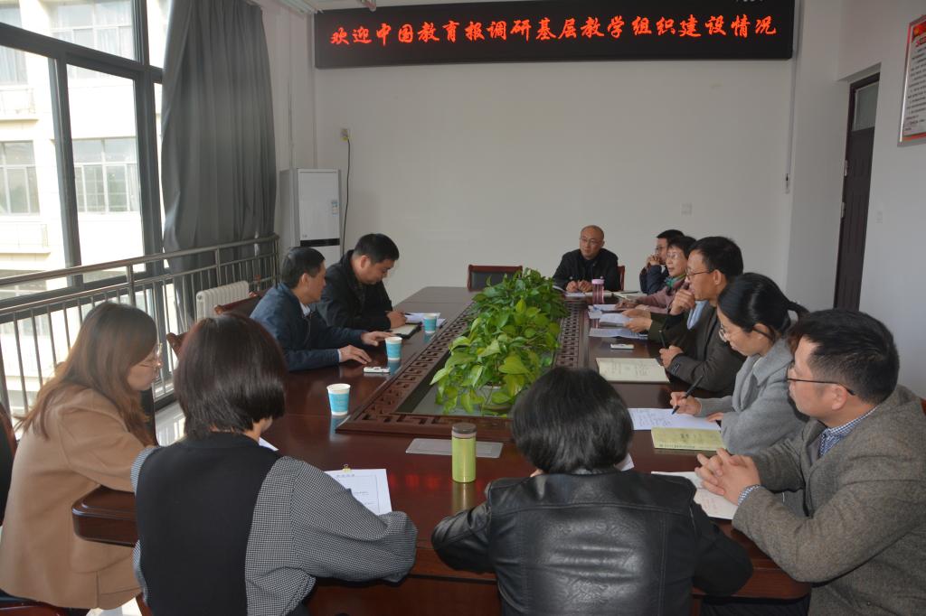 2019年10月17日上午,在唐多毅副校长、穆云超处长的陪同下,中国教育报河南记者站一行来到我院,针对我院省级优秀基层教学组织《毛泽东思想与中国特色社会主义理论体系概论》(下简称“概论”)课程组创优工作进行调研。太阳集团tyc151cc书记虎业勤、院长随新民及“概论”课程组部分成员参加座谈。