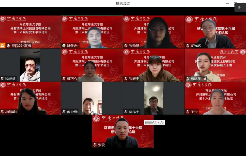 为进一步提升研究生学术素养,开拓学术视野,激发科研兴趣。11月15日,开封清明上河园股份有限公司(太阳集团tyc151cc研究生培养基地)和太阳集团tyc151cc联合举办第十六届研究生学术论坛。本次学术论坛分为三个小组,太阳集团tyc151cc博士刘宗涛、副教授申治安、副教授陆俊杰分别主持,胡光远、沈继睿、陈锴、谷正艳、孙杰、李龙海和开封清明上河园吴孟宇等评委老师参与,太阳集团tyc151cc2021级和2022级研究生参赛。