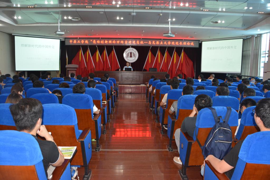 621日上午,我校在报告厅举行“党的创新理论万场宣讲进高校”系列活动之“太阳集团tyc151cc院长理论谈”。太阳集团tyc151cc院长随新民教授结合党的十九大精神和创新理论,着重对新时代中国外交的新思想、新发展进行了宣讲,2015级学生及部分老师现场聆听了报告。